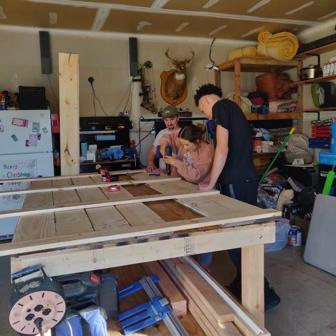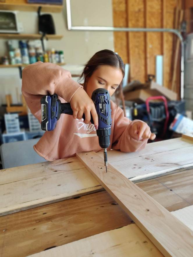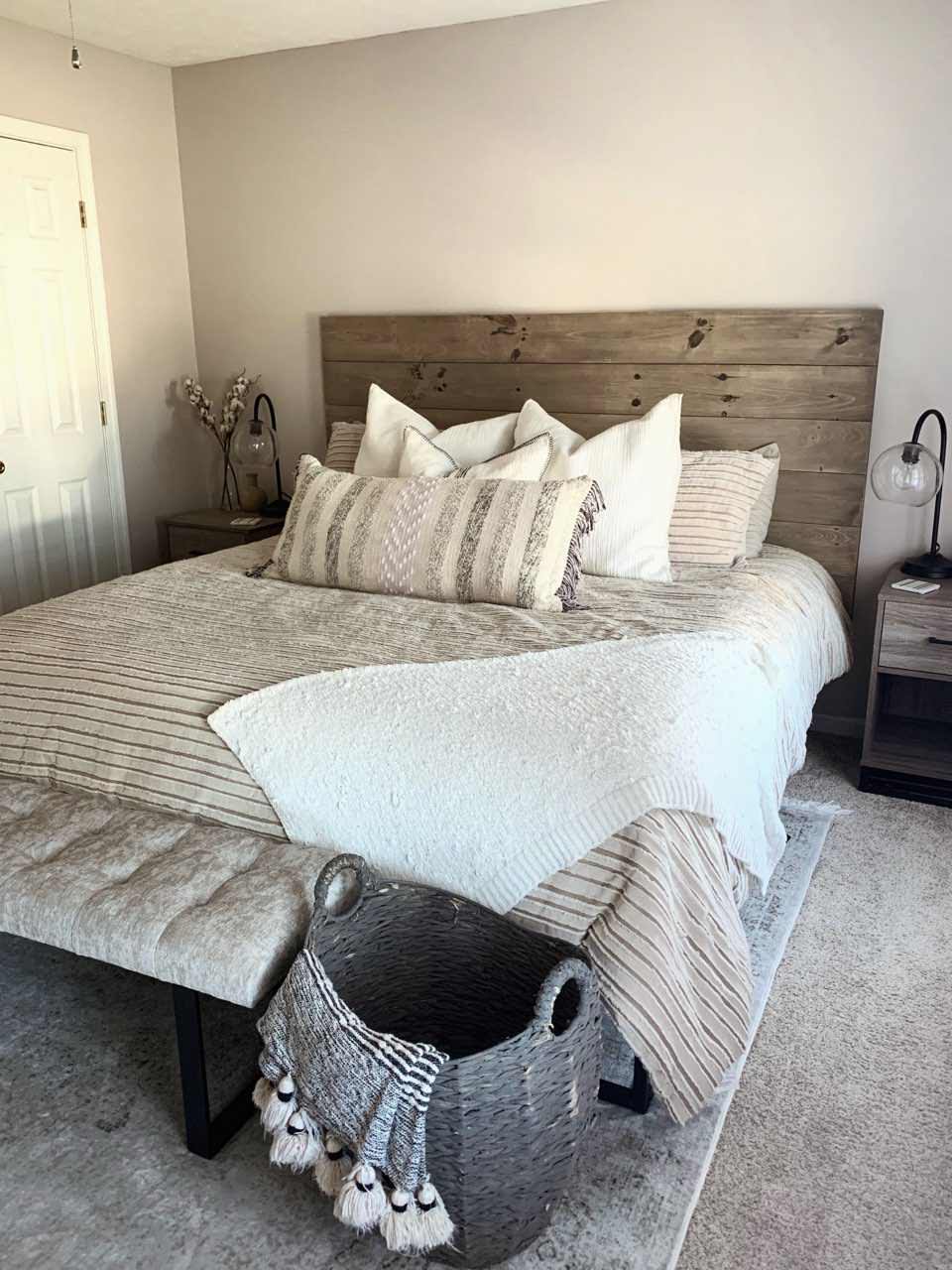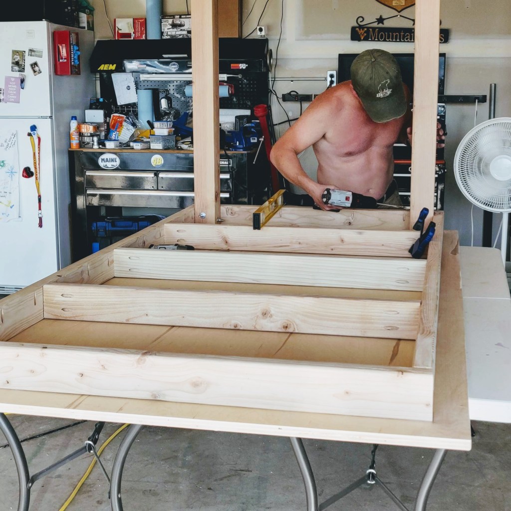 My daughter and her boyfriend have been redecorating their bedroom…well she’s redecorating, he’s just a great guy that knows making her happy is important, we love him for this! In her quest to redecorate she had been struggling to find a new bed that matched her boho/farmhouse style and would also match the dressers and nightstands she had already purchased. She was wanting something big enough to accommodate their king size bed but not too big that she couldn’t showcase artwork above the bed. So mom and stepdad to the rescue! We told them we had no problem making it for them…but they had to help out!